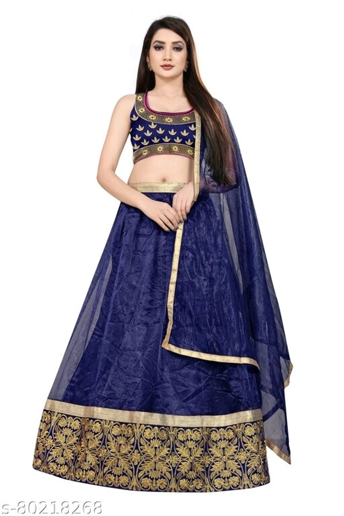 Aagyeyi Fashionable Women Lehenga Name: Aagyeyi Fashionable Women Lehenga Topwear Fabric: Satin Bottomwear Fabric: Net Dupatta Fabric: Net Set type: Choli And Dupatta Top Print or Pattern Type: Embroidered Bottom Print or Pattern Type: Lace Dupatta Print or Pattern Type: Lace Sizes: Semi Stitched (Lehenga Waist Size: 38 in, Lehenga Length Size: 42 in, Duppatta Length Size: 2 in) Un Stitched (Lehenga Waist Size: 38 in, Lehenga Length Size: 42 in, Duppatta Length Size: 2 in) Free Size (Lehenga Waist Size: 38 in, Lehenga Length Size: 42 in, Duppatta Length Size: 2 in) Country of Origin: India