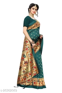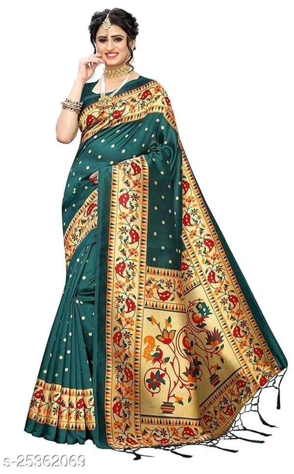Art Silk Saree, Printed Art Silk Saree with Blouse Piece, Blouse piece attached with saree. Saree Length: (5.5 Mtr)+ Blouse Length: (0.8 Mtr)
