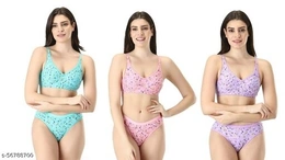Name: Alzuri Cotton Panty Cotton Bras Set For Girl's , Floral Printed Women Lingerie Innerwear Underwear Set For Everyday Use, High Quality Pure Cotton Bra & Penty Set