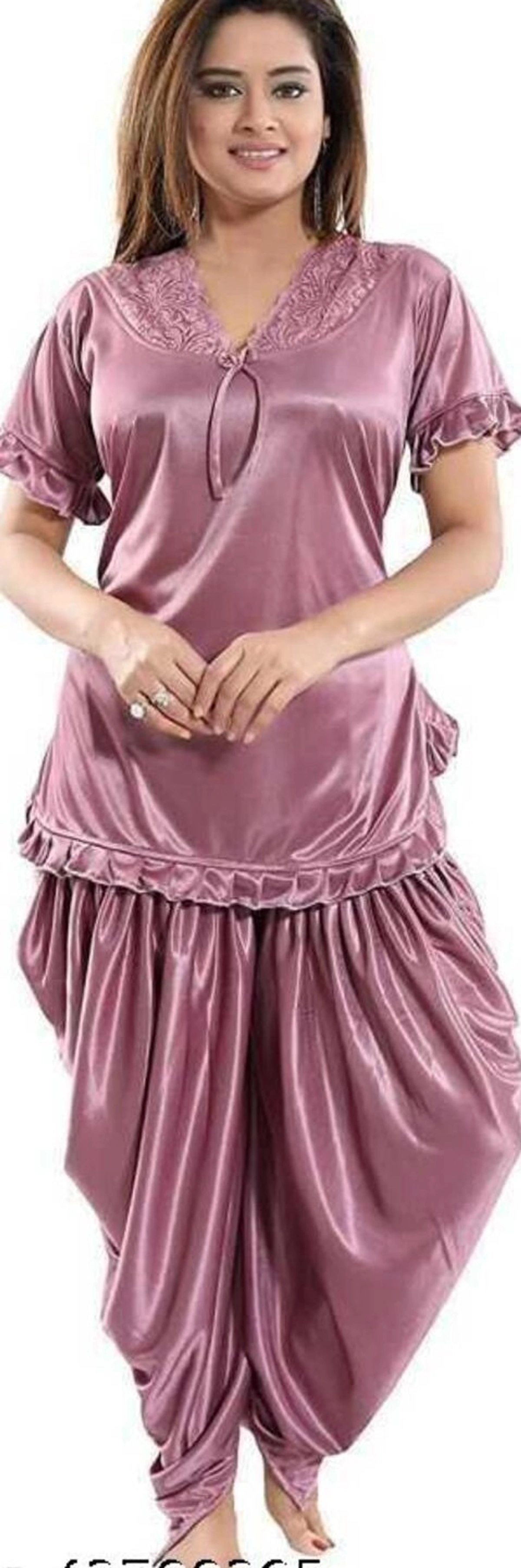 Aradhya Fashionable Women Nightsuits Name: Aradhya Fashionable Women Nightsuits Top Fabric: Satin Bottom Fabric: Satin Top Type: Regular Top Bottom Type: Pyjamas Sizes: Free Size (Top Bust Size: 40 in, Top Length Size: 25 in, Bottom Waist Size: 36 in, Bottom Length Size: 38 in) S (Top Bust Size: 32 in, Top Length Size: 25 in, Bottom Waist Size: 30 in, Bottom Length Size: 38 in) M (Top Bust Size: 36 in, Top Length Size: 25 in, Bottom Waist Size: 32 in, Bottom Length Size: 38 in) DHOTI KURTA NIGHTSUIT Country of Origin: India