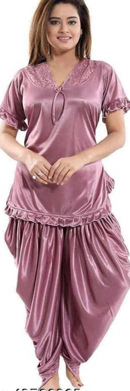 Aradhya Fashionable Women Nightsuits Name: Aradhya Fashionable Women Nightsuits Top Fabric: Satin Bottom Fabric: Satin Top Type: Regular Top Bottom Type: Pyjamas Sizes: Free Size (Top Bust Size: 40 in, Top Length Size: 25 in, Bottom Waist Size: 36 in, Bottom Length Size: 38 in) S (Top Bust Size: 32 in, Top Length Size: 25 in, Bottom Waist Size: 30 in, Bottom Length Size: 38 in) M (Top Bust Size: 36 in, Top Length Size: 25 in, Bottom Waist Size: 32 in, Bottom Length Size: 38 in) DHOTI KURTA NIGHTSUIT Country of Origin: India
