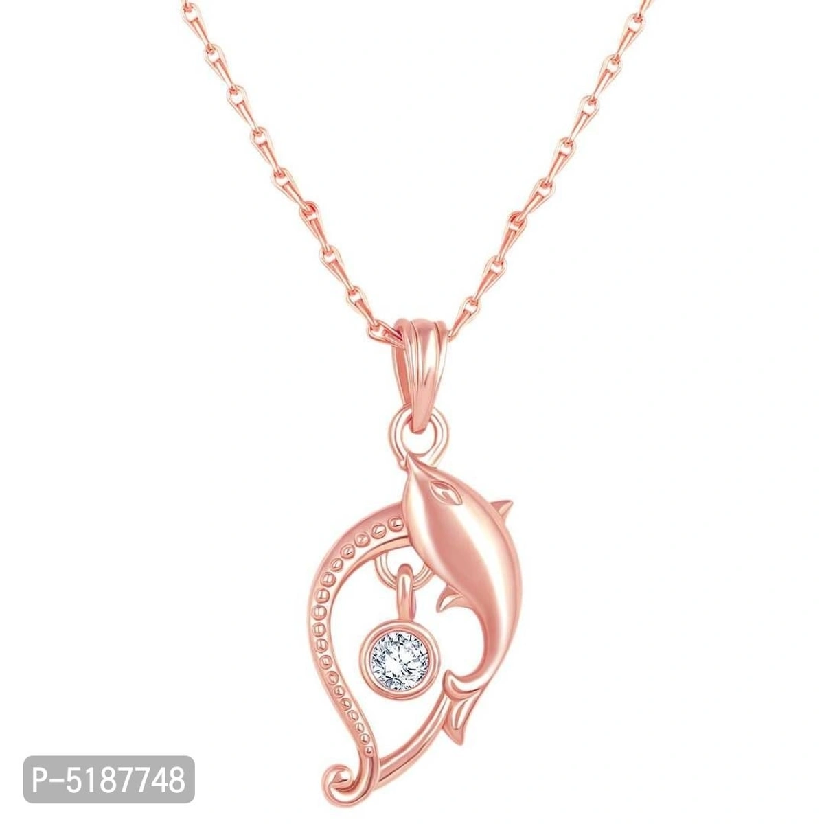 *Pretty Rose- Gold Toned Cz Fish Pendant With Chain For Women*