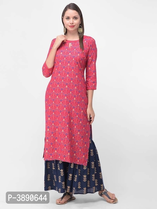 Beautiful Ethnic Wear Rayon Gold Printed & Trim Work Kurta & Cotton Gold Print Palazoo Set*