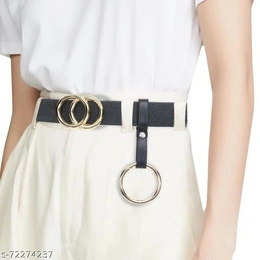Benzene Girls/Women's Trendy/Stylish Modern/ Formal/Casual Female High-Quality Adjustable Faux Leather Belt Loop Embellish with Diamond Ring (1.15 Inch wide)