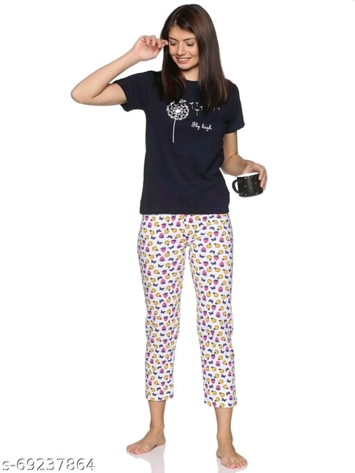 blue flyhigh nightsuit Name: blue flyhigh nightsuit Top Fabric: Cotton Bottom Fabric: Cotton Top Type: Tshirt Bottom Type: Pyjamas Sizes: S (Top Bust Size: 36 in, Top Length Size: 26 in, Bottom Waist Size: 32 in, Bottom Length Size: 37 in) XL (Top Bust Size: 42 in, Top Length Size: 28 in, Bottom Waist Size: 38 in, Bottom Length Size: 40 in) L (Top Bust Size: 40 in, Top Length Size: 28 in, Bottom Waist Size: 36 in, Bottom Length Size: 39 in) M (Top Bust Size: 38 in, Top Length Size: 27 in, Bottom Waist Size: 34 in, Bottom Length Size: 38 in) Country of Origin: India