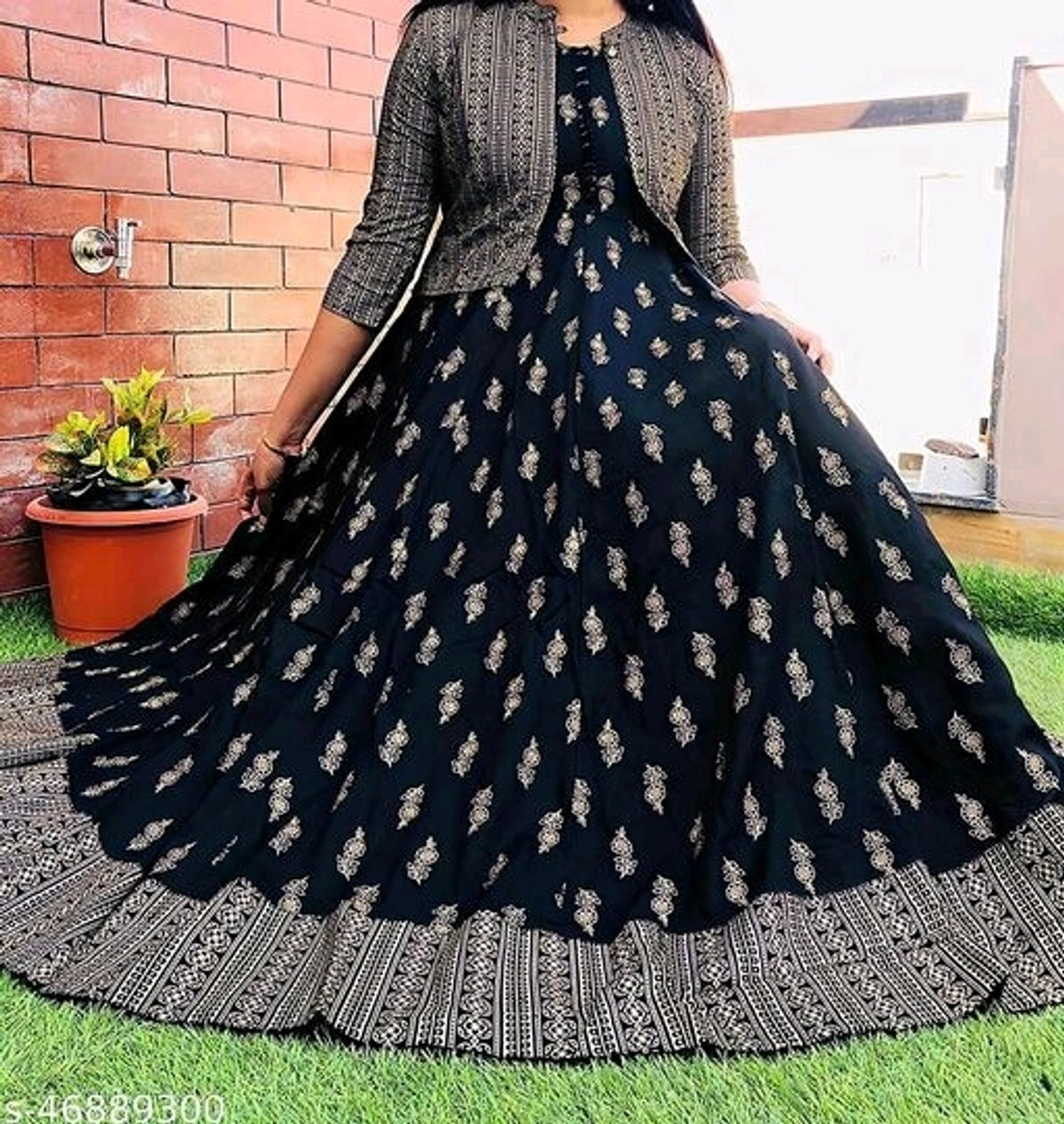 Classic Ravishing Women Gowns Name: Classic Ravishing Women Gowns Fabric: Rayon Sleeve Length: Three-Quarter Sleeves Pattern: Printed Multipack: 1 Sizes: XL (Bust Size: 42 in, Length Size: 55 in, Waist Size: 42 in, Hip Size: 42 in, Shoulder Size: 15 in) L (Bust Size: 40 in, Length Size: 55 in, Waist Size: 40 in, Hip Size: 40 in, Shoulder Size: 15 in) M (Bust Size: 38 in, Length Size: 55 in, Waist Size: 38 in, Hip Size: 38 in, Shoulder Size: 15 in) XXL (Bust Size: 44 in, Length Size: 55 in, Waist Size: 44 in, Hip Size: 44 in, Shoulder Size: 15 in) UNTOLD IDENTITY NEW DESIGN GOWN DRESSES Country of Origin: India Free and fast delivery Easy Returns Available In Case Of Any Issue return policy 6 Days