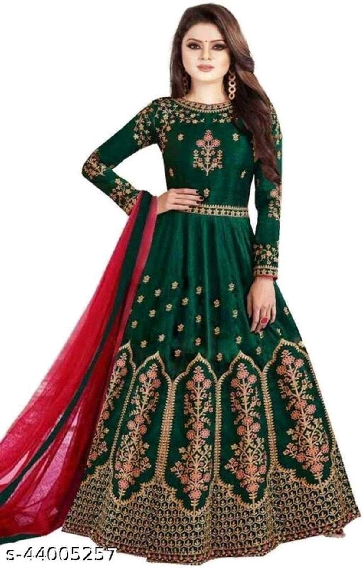 Classy Glamorous Women Gowns Name: Classy Glamorous Women Gowns Fabric: Silk Blend Sleeve Length: Long Sleeves Pattern: Embroidered Multipack: 1 Sizes: Free Size (Bust Size: 42 in, Length Size: 57 in, Waist Size: 45 in) M (Bust Size: 44 in, Length Size: 57 in, Waist Size: 47 in) L (Bust Size: 46 in, Length Size: 57 in, Waist Size: 49 in) XL (Bust Size: 48 in, Length Size: 57 in, Waist Size: 51 in) XXL (Bust Size: 50 in, Length Size: 57 in, Waist Size: 53 in) Duppatta length size:2.2 m country of origin india Country of Origin: India Free and fast delivery Easy Returns Available In Case Of Any Issue return policy 6 Days