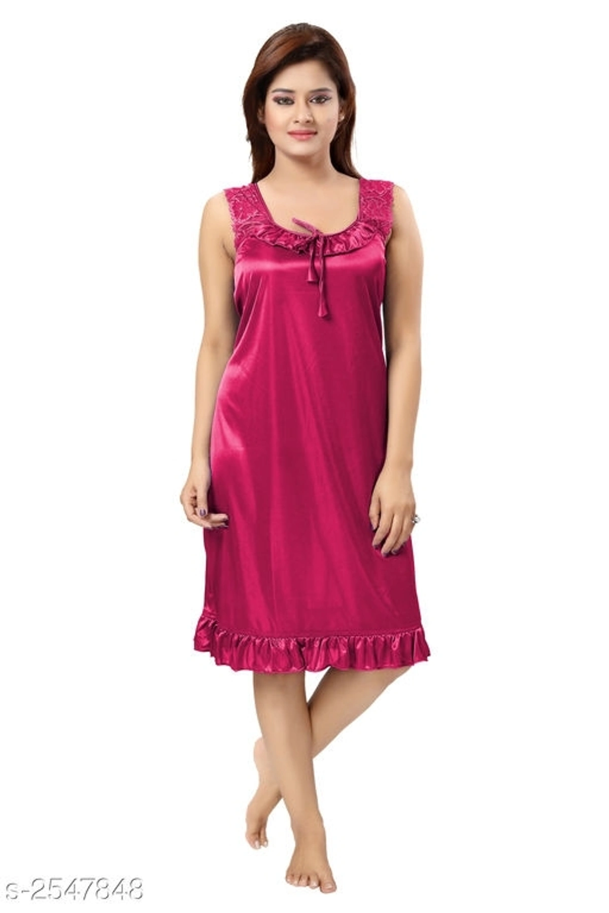 Comfy Women's Satin Babydoll Name: Comfy Women's Satin Babydoll Fabric: Satin Sleeves: Sleeves Are Not Included Size: Up to 30 in To 36 in (Free Size) Length: Up to 36 in Type: Stitched Description: It Has 1 Piece Of Babydoll Pattern: Solid