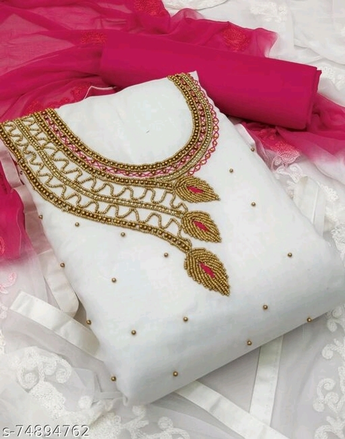Name: Cotton Embellished White Dress Material