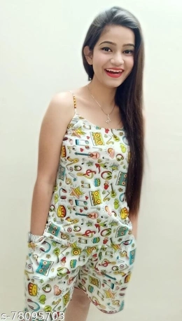 Featuring Cream orchestra print night suit consists of Top and Shorts in stretchable fabric ,adjustable shoulder straps has an elastic waistband on closure