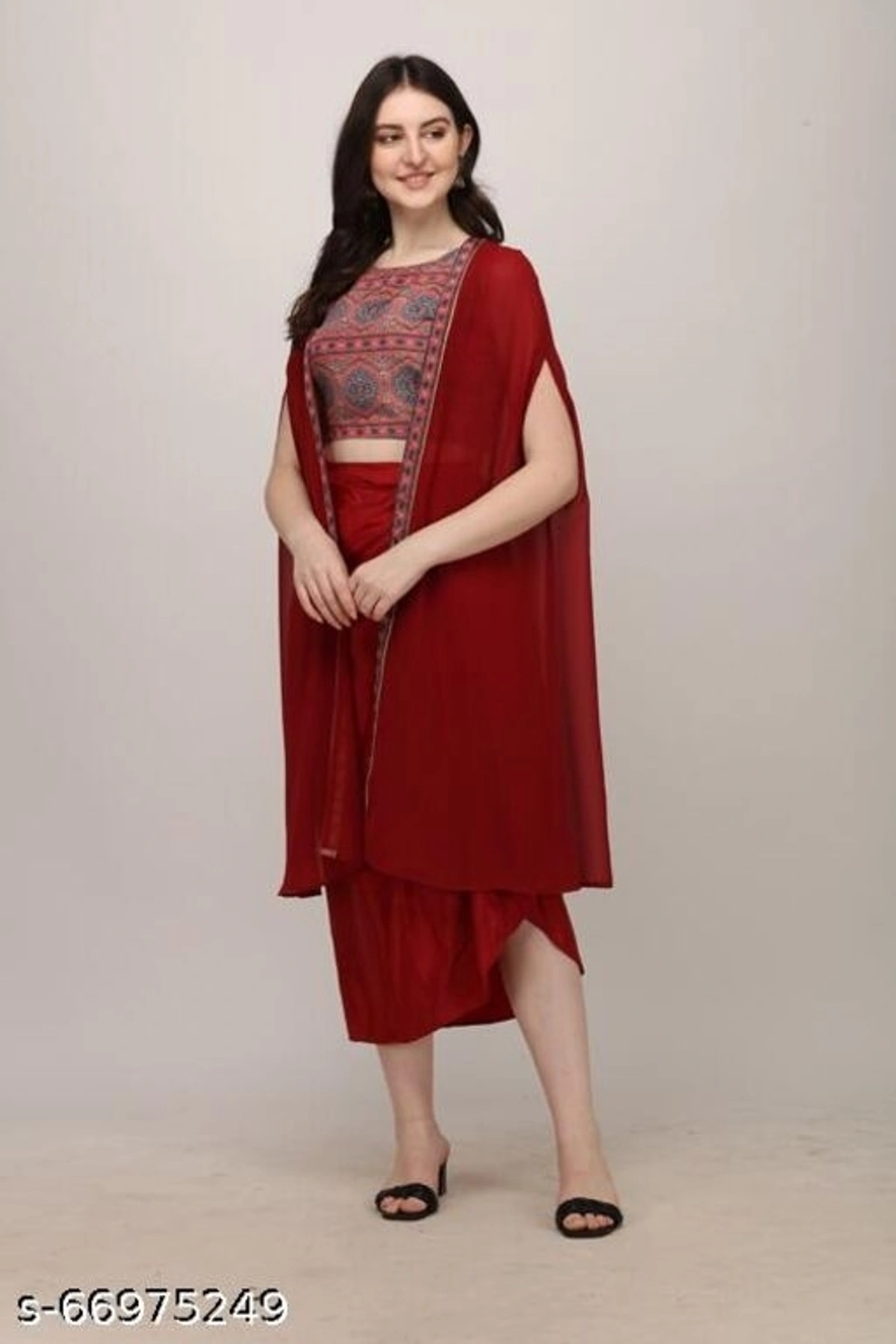 Crop Top Dhoti and Shrug Name: Crop Top Dhoti and Shrug Sizes: S, M, L, XL Country of Origin: India