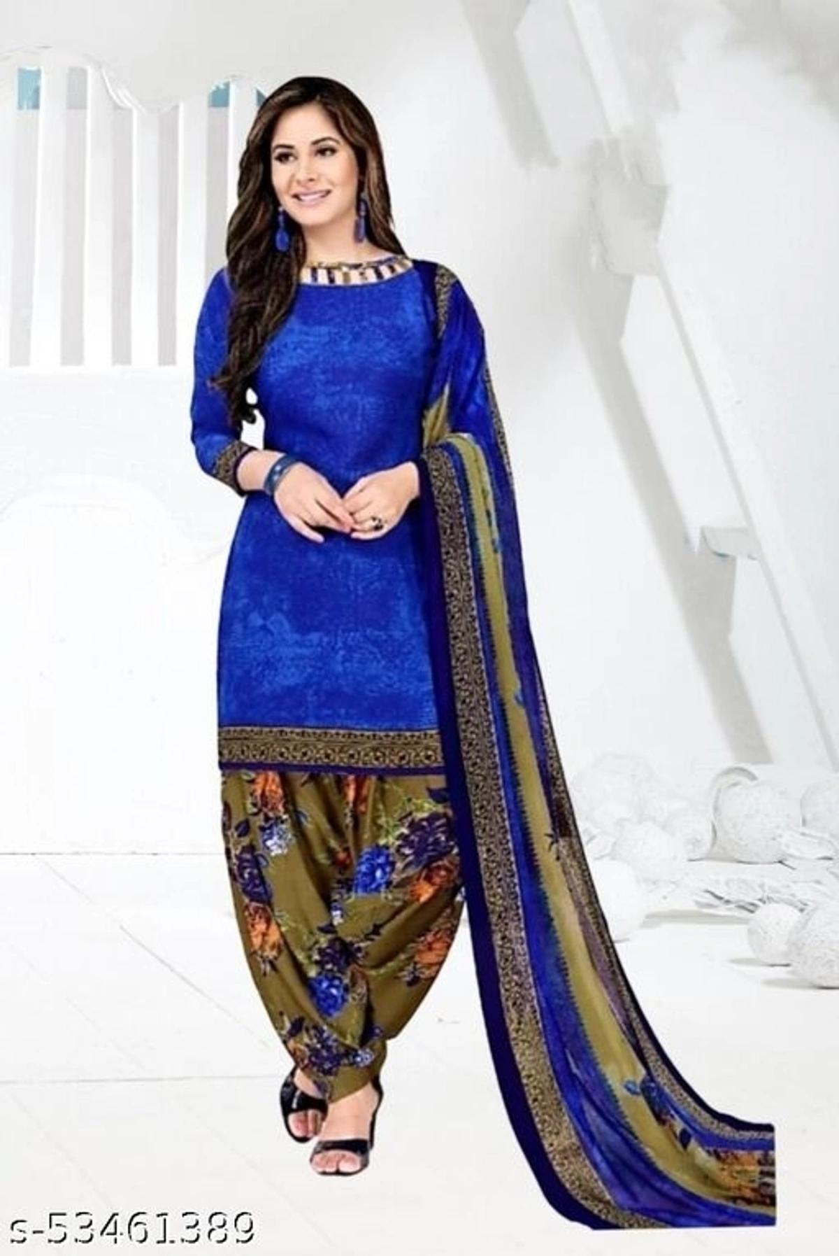 Charvi Fabulous Salwar Suits & Dress Materials Top Fabric: Crepe + Top Length: 2.1 Meters Bottom Fabric: Crepe + Bottom Length: 2.1 Meters Dupatta Fabric: Crepe + Dupatta Length: 2.1 Meters