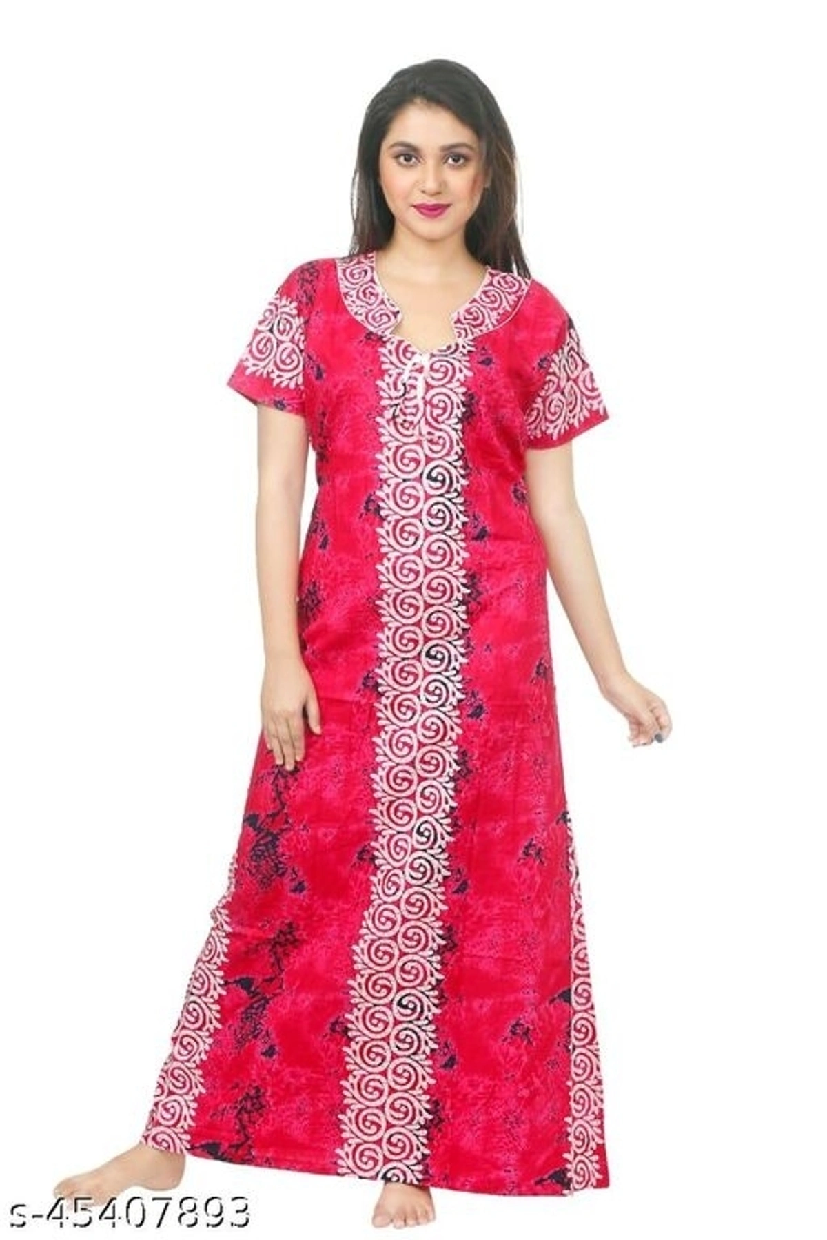 Divine Alluring Women Nightdresses Name: Divine Alluring Women Nightdresses Fabric: Cotton Blend Sleeve Length: Short Sleeves Pattern: Printed Multipack: 1 Sizes: Free Size, XL, L Explore supreme level of comfort and gorgeous looks with our top of the line Women's Nighty available in multiple colors. Get super soft 100 % cotton Nighty for a peaceful Night Sleep. The Nighty from Final Choice has been crafted to ensure you feel comfortable and at ease throughout the night. The fabric is soft making it the right and final choice for nightwear. Country of Origin: India