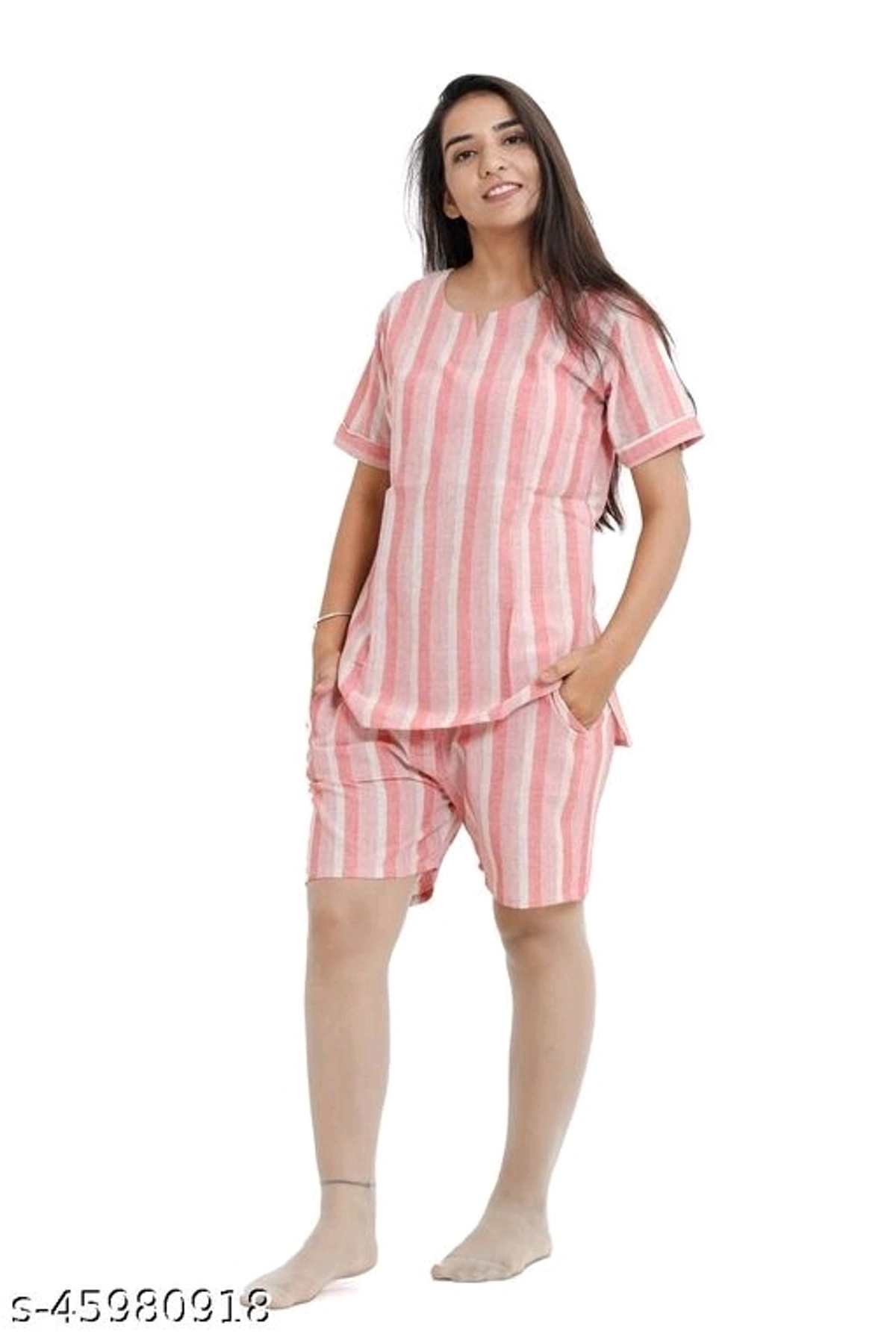 Divine Fashionable Women Nightsuits Name: Divine Fashionable Women Nightsuits Top Fabric: Cotton Bottom Fabric: Cotton Top Type: Regular Top Bottom Type: Shorts Sleeve Length: Short Sleeves Pattern: Printed Multipack: 2 Sizes: XL (Top Bust Size: 42 in, Top Length Size: 32 in, Bottom Waist Size: 32 in, Bottom Length Size: 20 in) L (Top Bust Size: 40 in, Top Length Size: 32 in, Bottom Waist Size: 30 in, Bottom Length Size: 20 in) M (Top Bust Size: 38 in, Top Length Size: 32 in, Bottom Waist Size: 28 in, Bottom Length Size: 20 in) XXL (Top Bust Size: 44 in, Top Length Size: 32 in, Bottom Waist Size: 34 in, Bottom Length Size: 20 in) Cotton Printed Women's Nightsuit (Top with Shorts) Country of Origin: India
