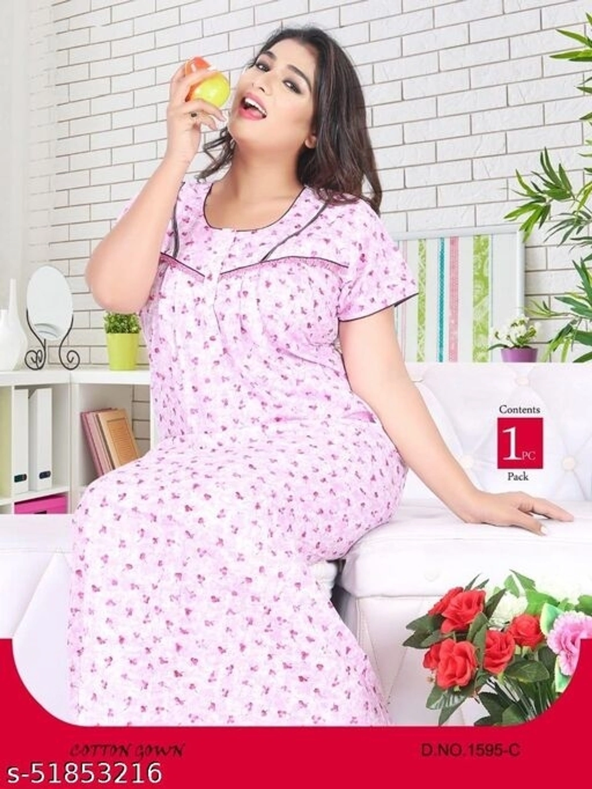 Eva Adorable Women Nightdresses Name: Eva Adorable Women Nightdresses Fabric: Cotton Sleeve Length: Short Sleeves Pattern: Printed Multipack: 1 Sizes: Free Size (Bust Size: 45 in, Length Size: 55 in) Country of Origin: India