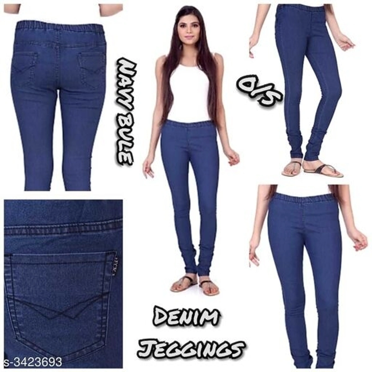 Fancy Denim Women's Jeggings Name: Fancy Denim Women's Jeggings Fabric: Denim Pattern: Solid Multipack: 1 Sizes: 24, 26, 28, 30, 32, 34, 36, 38, 40, 42, 44, 46 Country of Origin: India