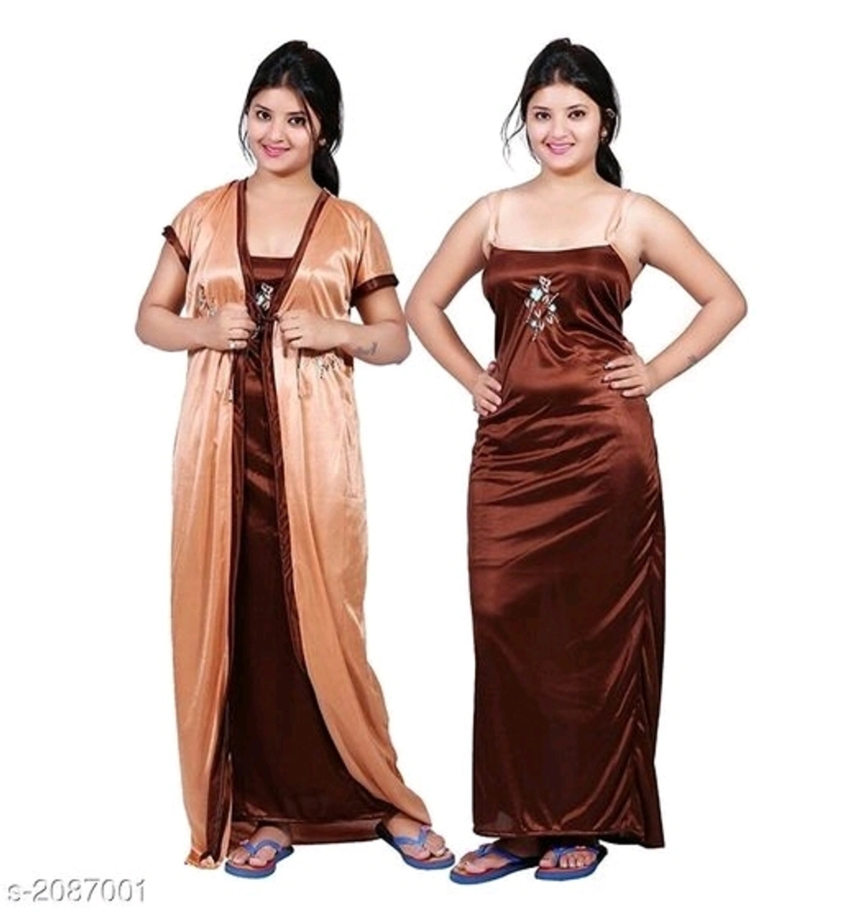 Fancy Women's Satin Night Dress Name: Fancy Women's Satin Night Dress Fabric: Satin Sleeves: Nighty - Sleeves Are Not Included Robe - Sleeves Are Included Size: Up to 36 in To 44 in (Free Size) Length: Nighty - Up to 48 in Robe - Up to 50 in Type: Stitched Description: It Has 1 Piece Of Nighty & 1 Piece Of Robe Work: Embroidered Country of Origin: India
