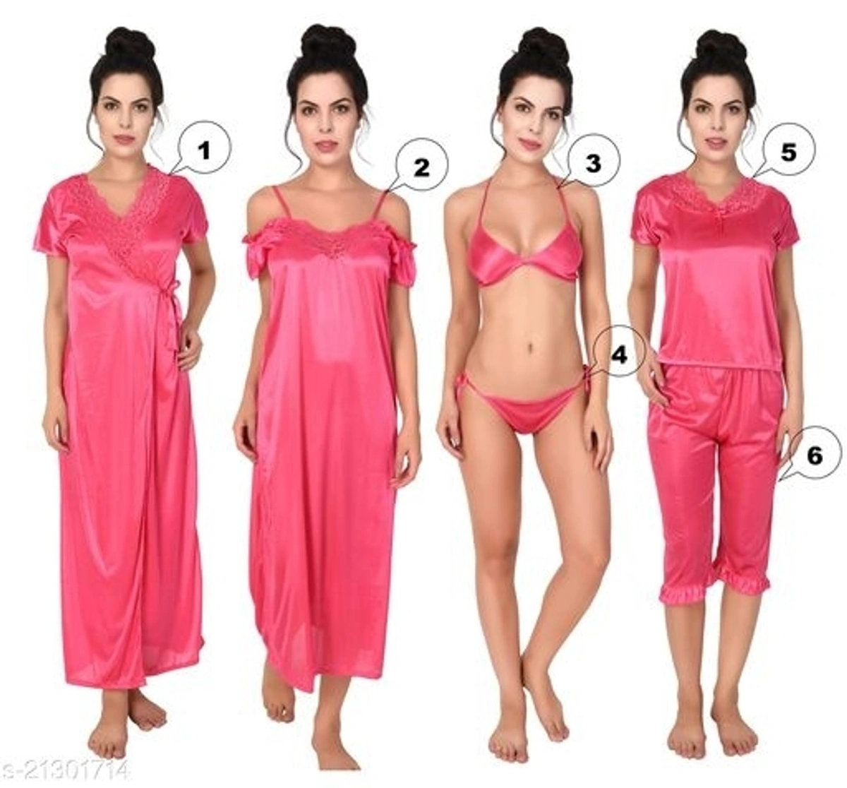 Name: Fashion India Satin Pink color Nighty Set/Nightdress - Pack of 6