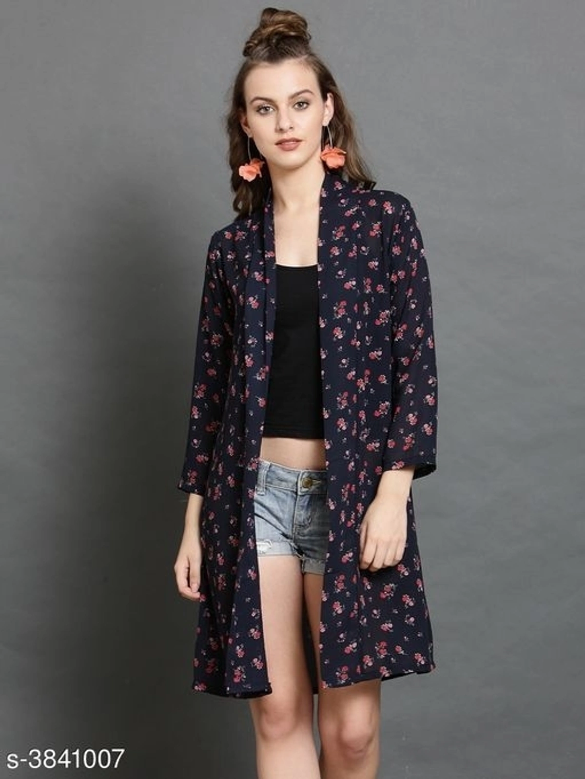 Georgette Women's Shrug Name: Georgette Women's Shrug Fabric: Georgette Sleeve Length: Three-Quarter Sleeves Fit/ Shape: Shrug Pattern: Printed Multipack: 1 Sizes: S, M, L Country of Origin: India