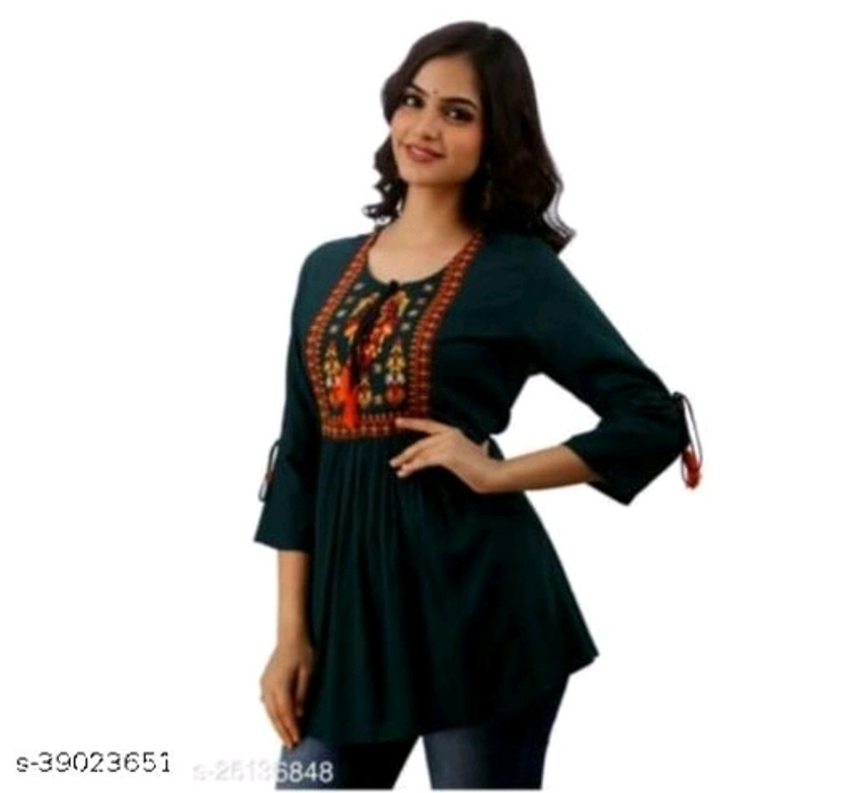 HEAVY EMBROIDERY NEW TRADITIONAL TOP Name: HEAVY EMBROIDERY NEW TRADITIONAL TOP Fabric: Rayon Sleeve Length: Three-Quarter Sleeves Pattern: Embroidered Multipack: 1 Sizes: S (Bust Size: 36 in) XL (Bust Size: 42 in) L (Bust Size: 40 in) M (Bust Size: 38 in) XXL (Bust Size: 44 in) EMBROIDERY WORK Country of Origin: India free delivery return policy 6 days