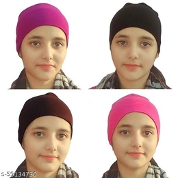 Hejabiya Unisex Solid Hijab Cap Headband Under scarf - underscarf cap for women Combo Set of 4 Bands (Purple,Black,Brown,Pink)