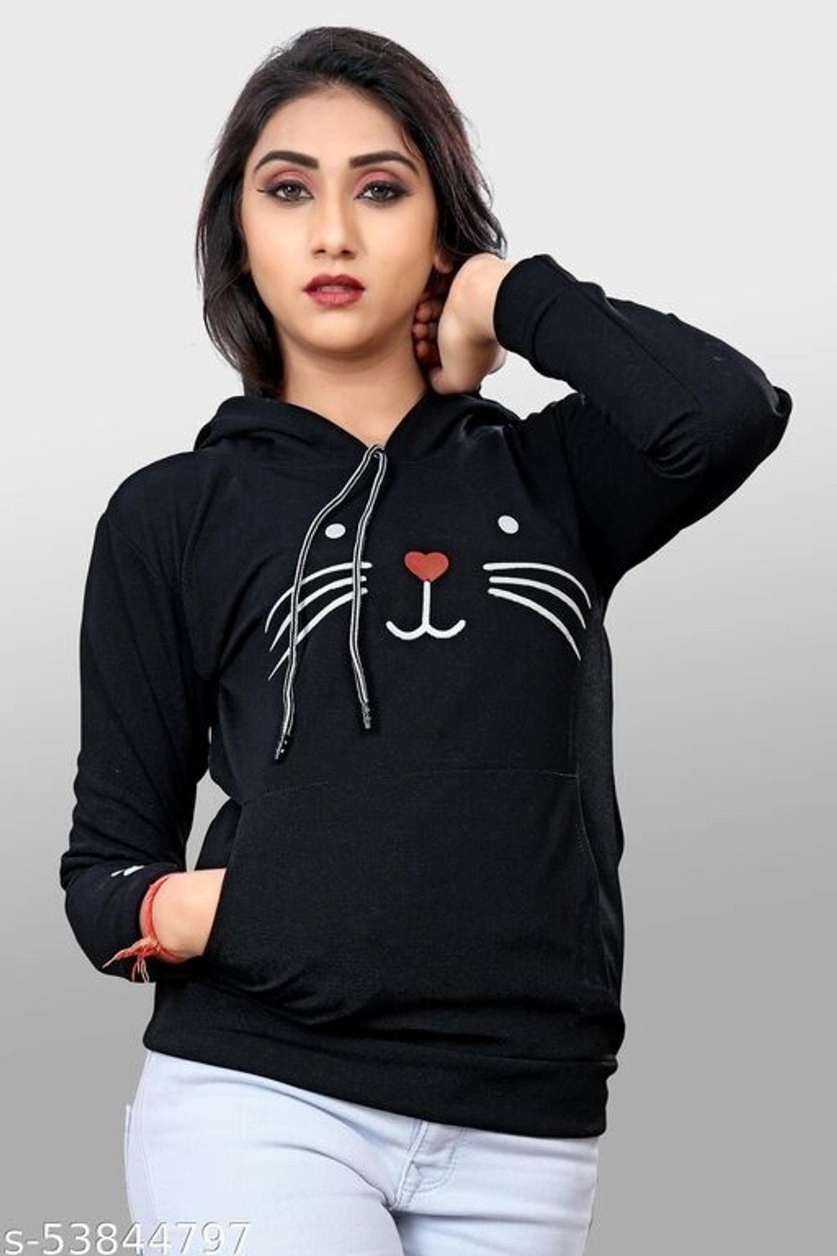 HOT TRENDY MEOW HOODIE FOR GIRLS Name: HOT TRENDY MEOW HOODIE FOR GIRLS Fabric: Polycotton Sleeve Length: Long Sleeves Pattern: Printed Multipack: 1 Sizes: S (Bust Size: 32 in, Length Size: 23 in) M (Bust Size: 34 in, Length Size: 23 in) L (Bust Size: 36 in, Length Size: 24 in) XL (Bust Size: 38 in, Length Size: 24 in) Country of Origin: India