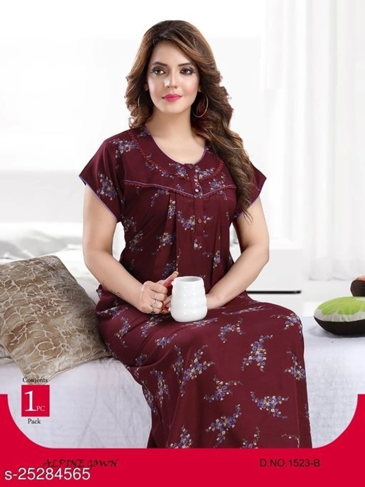 Inaaya Stylish Women Nightdresses Name: Inaaya Stylish Women Nightdresses Fabric: Cotton Blend Sleeve Length: Short Sleeves Pattern: Printed Multipack: 1 Sizes: Free Size (Bust Size: 47 in, Length Size: 55 in) Country of Origin: India