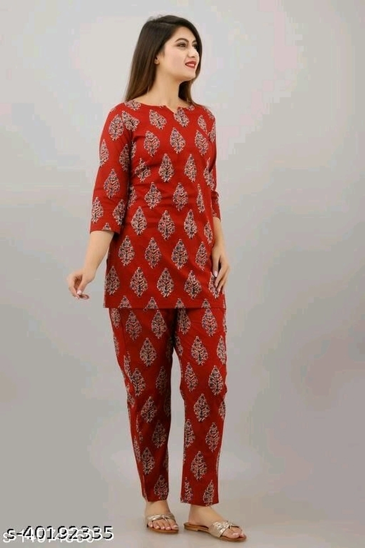 Inaaya Stylish Women Nightsuits Name: Inaaya Stylish Women Nightsuits Top Fabric: Cotton Bottom Fabric: Cotton Top Type: Regular Top Bottom Type: Pyjamas Sleeve Length: Three-Quarter Sleeves Pattern: Printed Multipack: 2 Sizes: S (Top Bust Size: 38 in, Top Length Size: 30 in, Bottom Waist Size: 38 in, Bottom Length Size: 38 in) XL (Top Bust Size: 44 in, Top Length Size: 31 in, Bottom Waist Size: 44 in, Bottom Length Size: 38 in) L (Top Bust Size: 42 in, Top Length Size: 30 in, Bottom Waist Size: 42 in, Bottom Length Size: 38 in) M (Top Bust Size: 40 in, Top Length Size: 30 in, Bottom Waist Size: 40 in, Bottom Length Size: 38 in) XXL (Top Bust Size: 46 in, Top Length Size: 31 in, Bottom Waist Size: 46 in, Bottom Length Size: 38 in) Country of Origin: India
