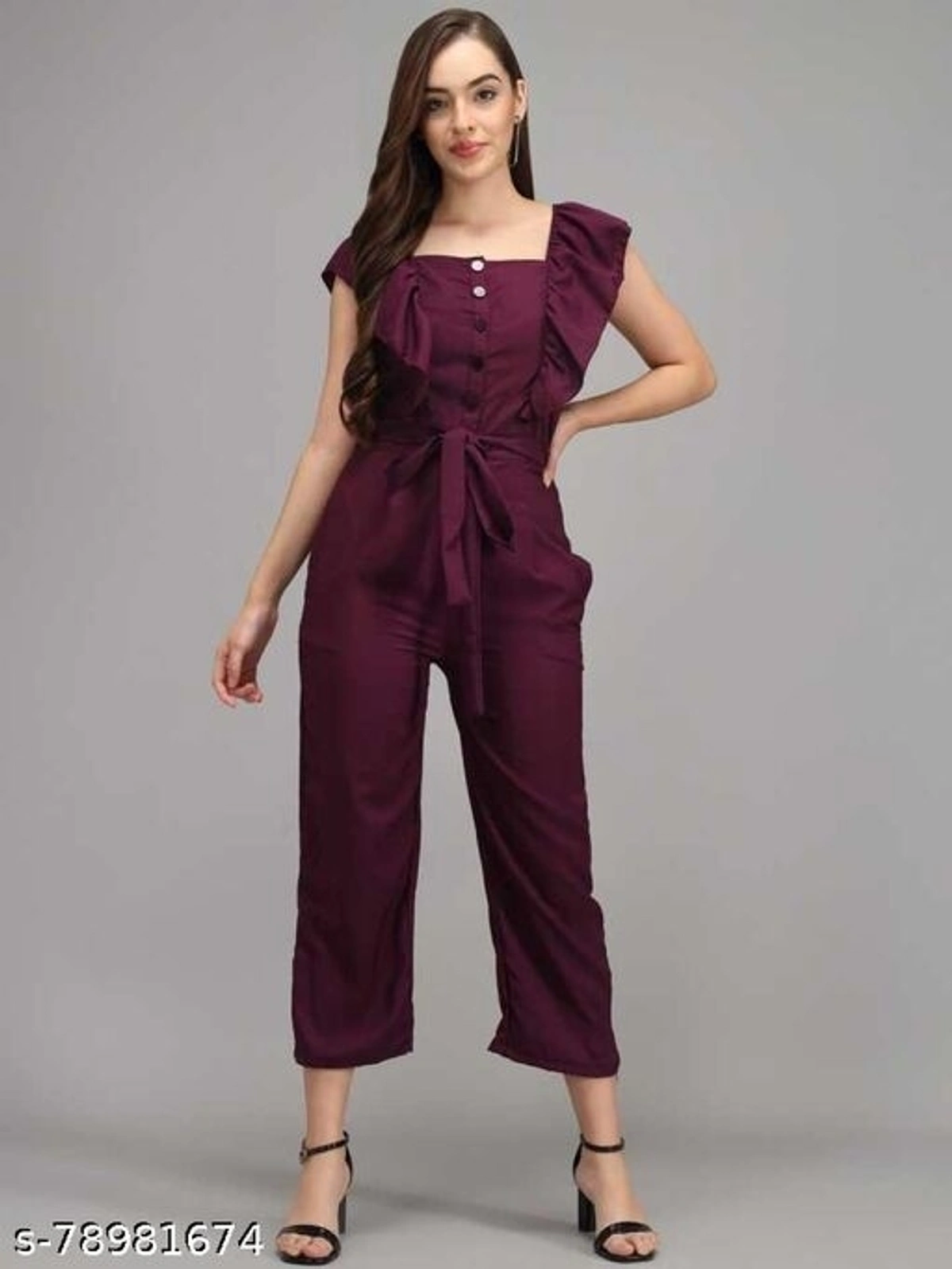 jampsuit Name: jampsuit Fabric: Crepe Sleeve Length: Sleeveless Pattern: Solid Multipack: 1 Sizes: S (Bust Size: 34 in, Length Size: 51 in, Waist Size: 30 in) M (Bust Size: 36 in, Length Size: 52 in, Waist Size: 32 in) L (Bust Size: 38 in, Length Size: 53 in, Waist Size: 34 in) Country of Origin: India