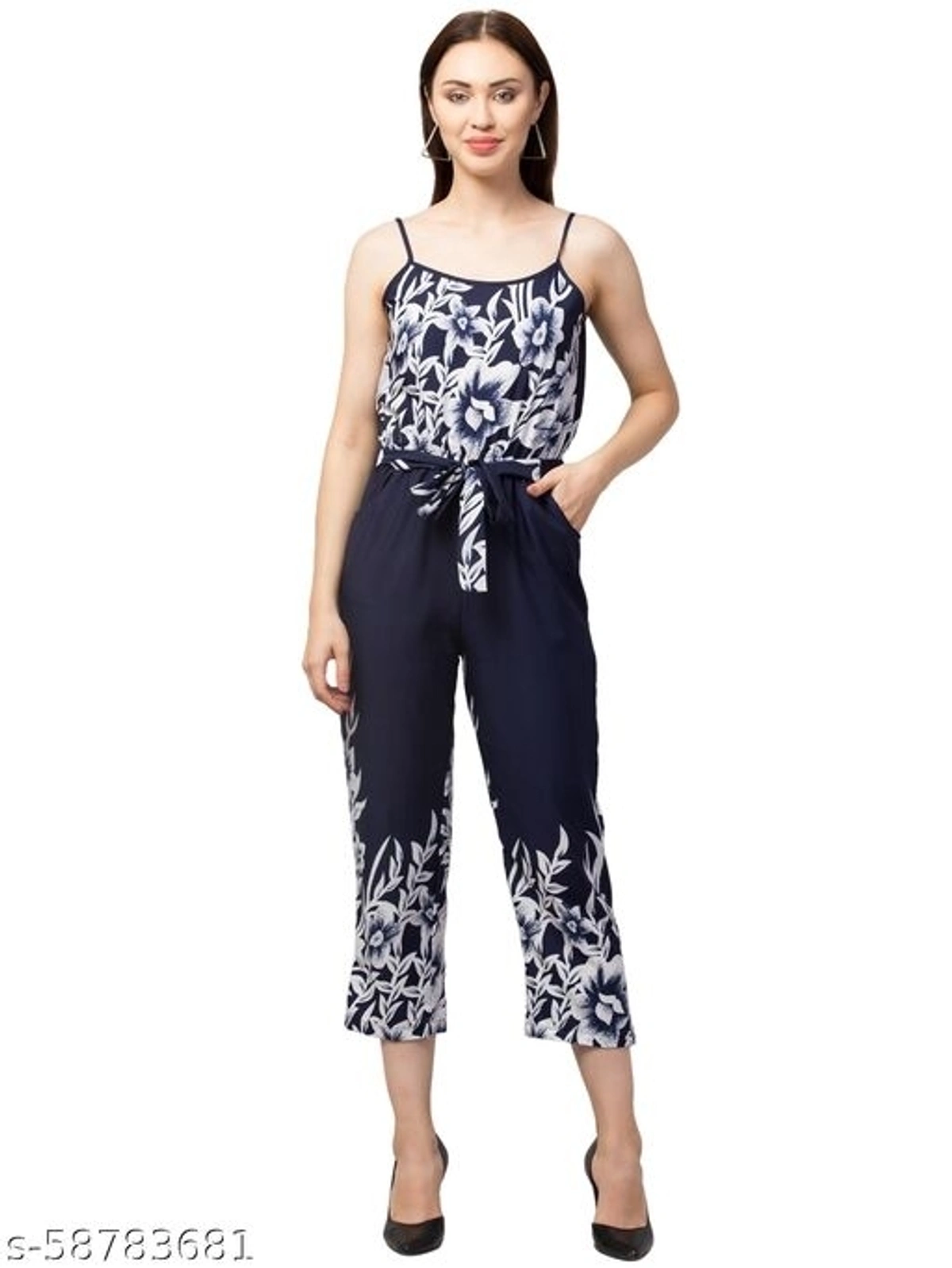 jumpsuit Name: jumpsuit Fabric: Crepe Sleeve Length: Sleeveless Pattern: Printed Multipack: 1 Sizes: XS (Bust Size: 32 in, Length Size: 48 in, Waist Size: 28 in) S (Bust Size: 34 in, Length Size: 48 in, Waist Size: 30 in) M (Bust Size: 36 in, Length Size: 49 in, Waist Size: 32 in) Country of Origin: India