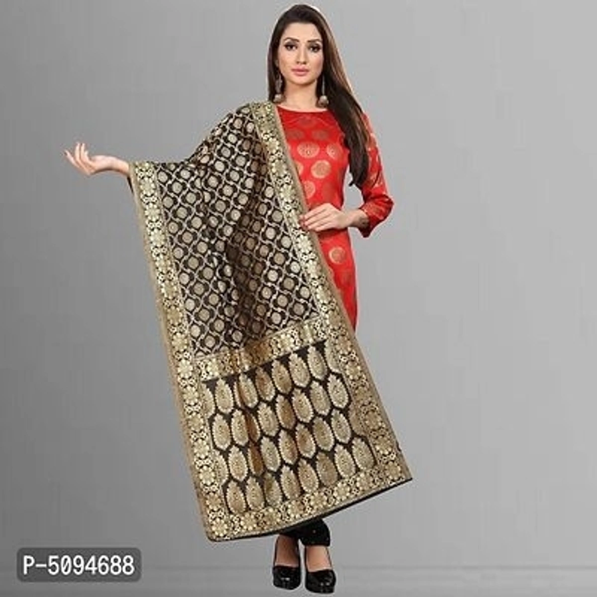 *Stunning Black Banarasi Silk Woven Design Dupatta For Women*
