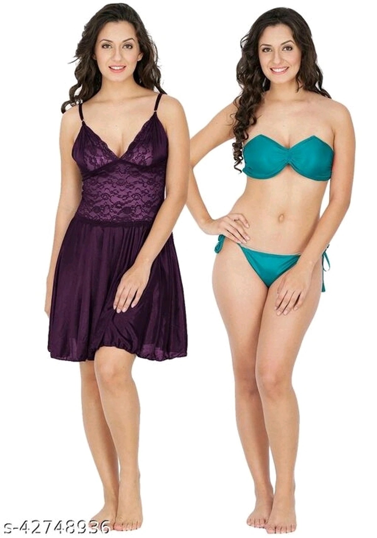 Klamotten Women Nightwear And Bikini Set Name: Klamotten Women Nightwear And Bikini Set Fabric: Satin Sleeve Length: Sleeveless Pattern: Solid Multipack: 2 Sizes: Free Size (Bust Size: 38 in, Length Size: 27 in, Waist Size: 34 in, Hip Size: 36 in) Country of Origin: India