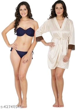 Klamotten Women Nightwear And Bikini Set Name: Klamotten Women Nightwear And Bikini Set Fabric: Satin Sleeve Length: Sleeveless Pattern: Solid Multipack: 2 Sizes: Free Size (Bust Size: 38 in, Length Size: 27 in, Waist Size: 34 in, Hip Size: 36 in) Country of Origin: India