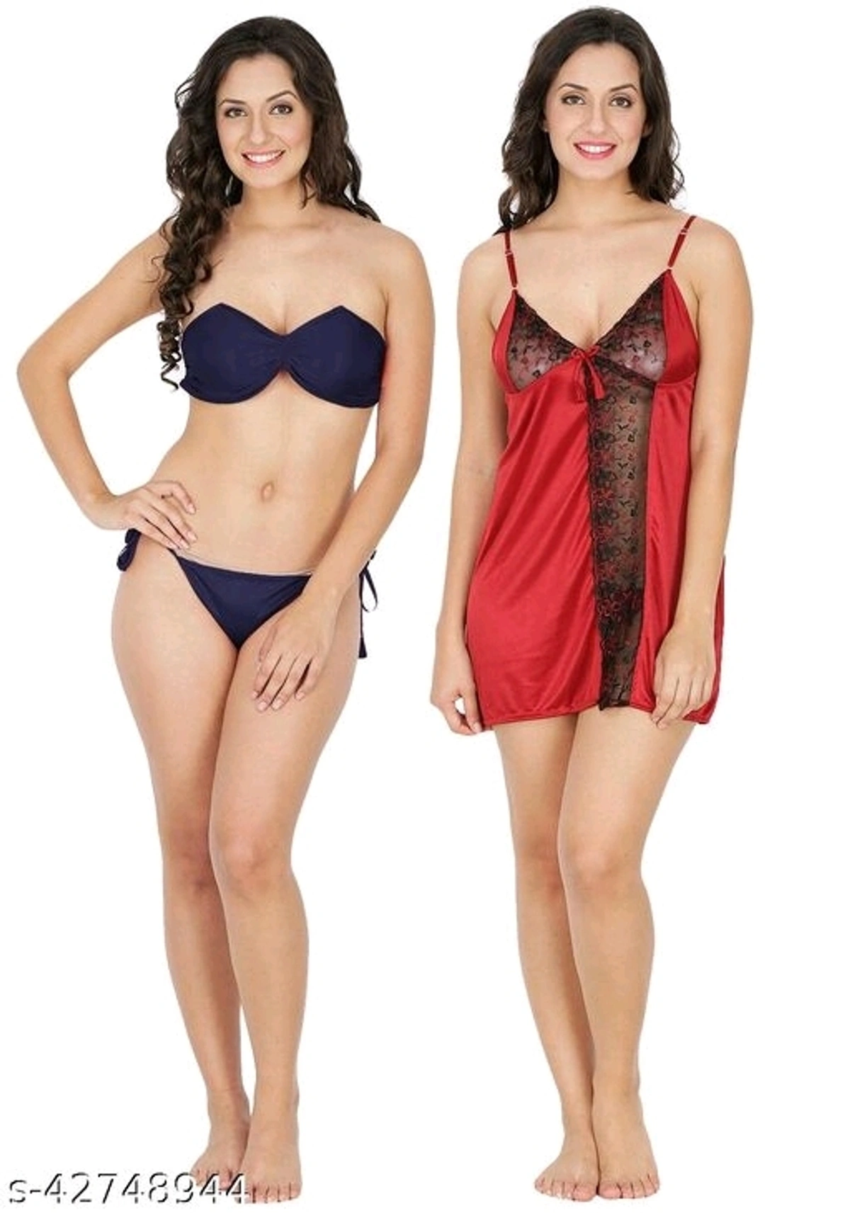 Klamotten Women Nightwear And Bikini Set Name: Klamotten Women Nightwear And Bikini Set Fabric: Satin Sleeve Length: Sleeveless Pattern: Solid Multipack: 2 Sizes: Free Size (Bust Size: 38 in, Length Size: 27 in, Waist Size: 34 in, Hip Size: 36 in) Country of Origin: India
