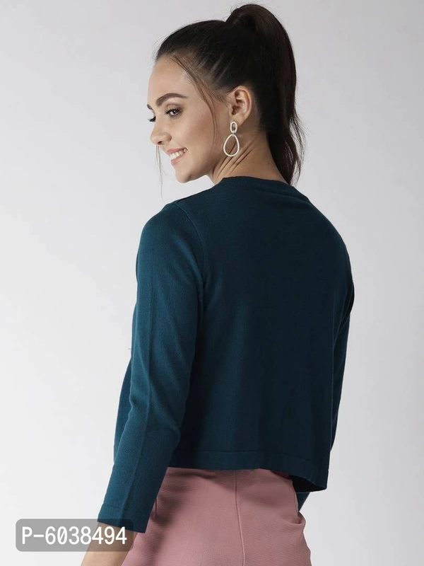 Elegant Green Cotton Solid Straight Shrugs For Women