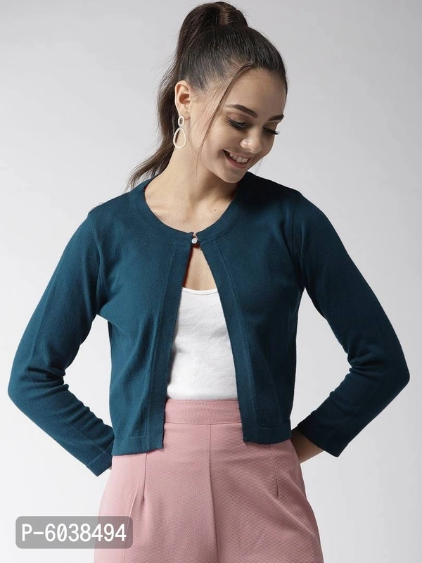 Elegant Green Cotton Solid Straight Shrugs For Women