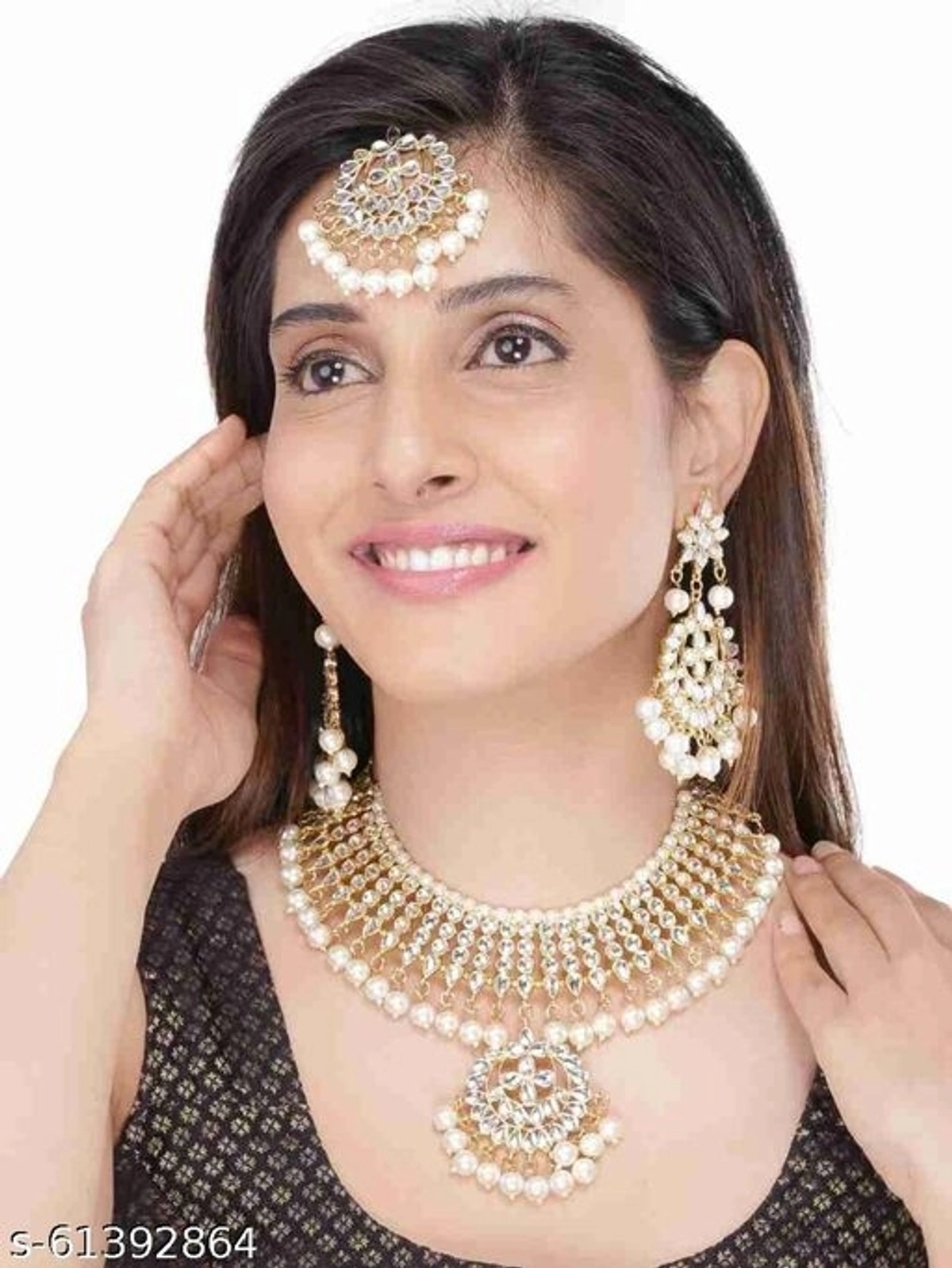 Name: Trendy Gold and White Pearl Handicraft Necklace