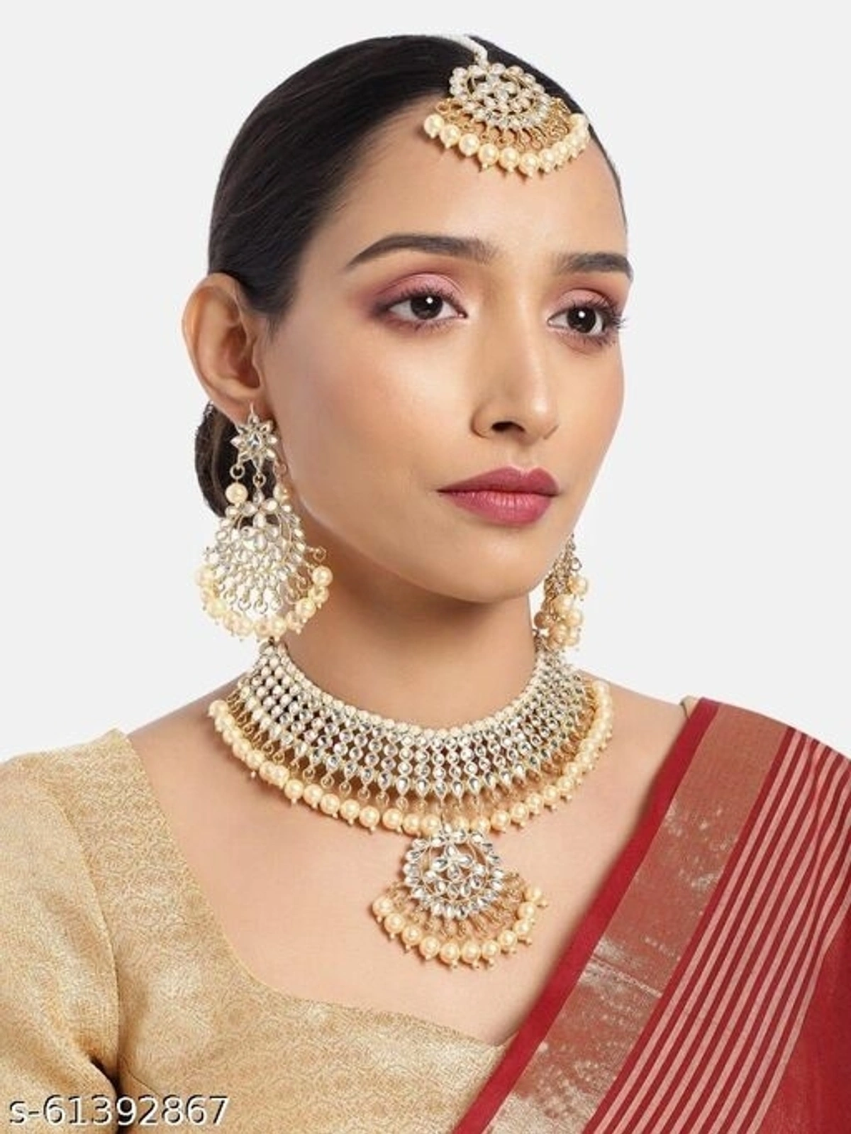 Name: Trendy Gold and White Pearl Handicraft Necklace