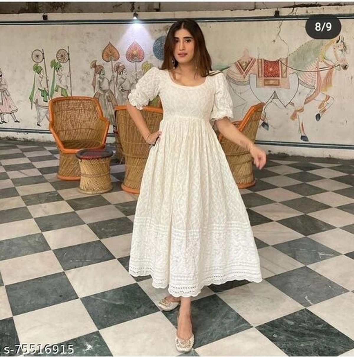 Lucknavi chickenkari cotton offwhite colour dress A SUMMER SPECIAL