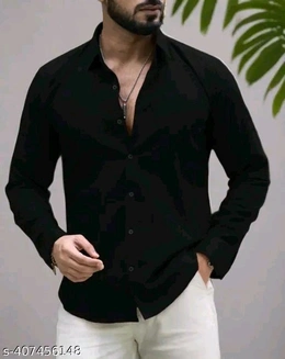Name: Men Slim Fit Solid Spread Collar Casual Shir|black shirt|under 149|Premium quality|Casual wear|Party wear