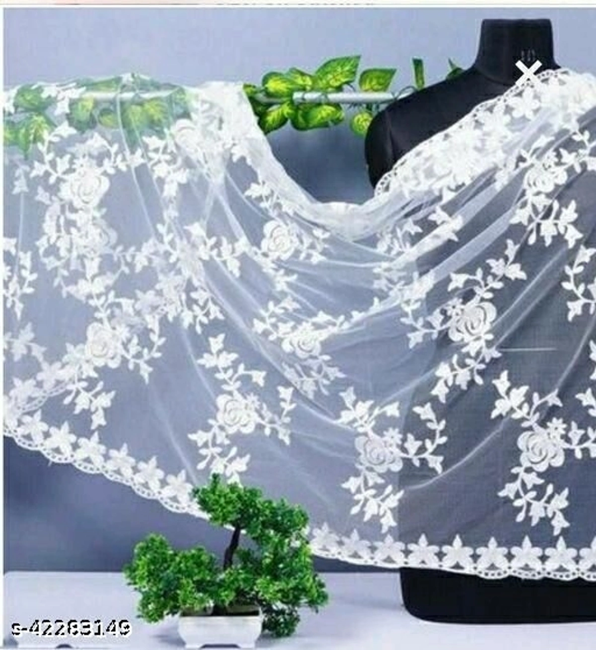 Miss Lady Fashion Soft Net (nylon) White Dupatta