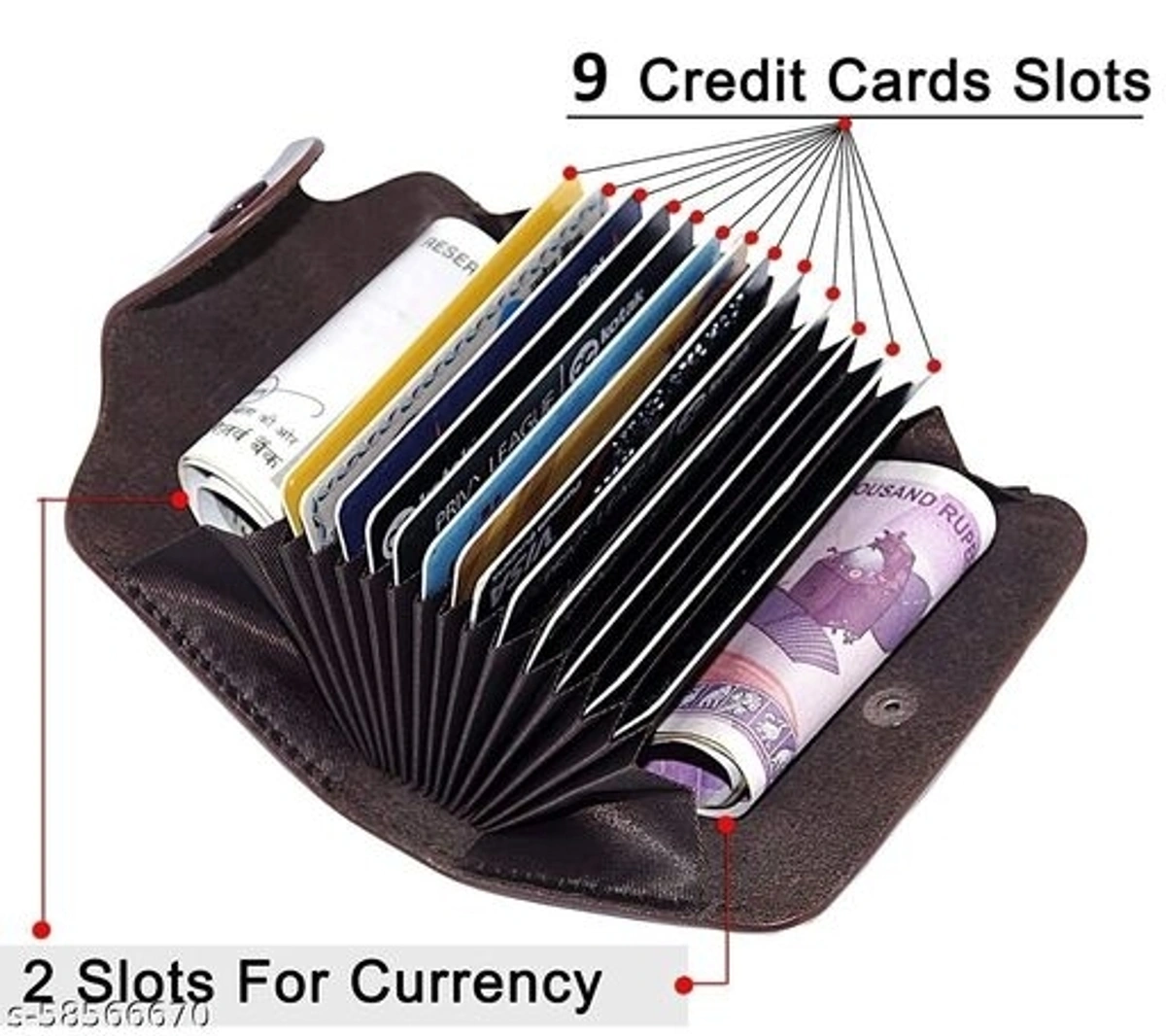 MJKART 9 Slots Leather Credit/ATM/Debit Card Holder Wallet for Men & Women (10.5 x 7.5 x 2.6 cm, Black)