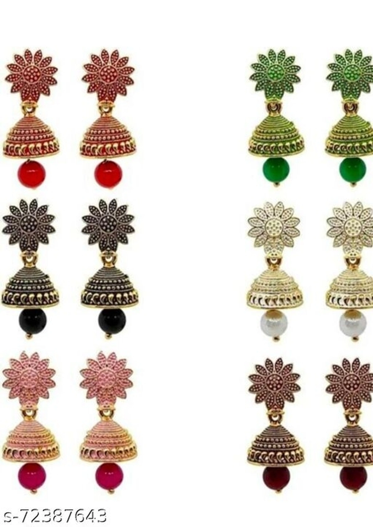 New Jewel Small Combo Jhumkas Earrings for Girls and Women Pack of 6 - Multicolor
