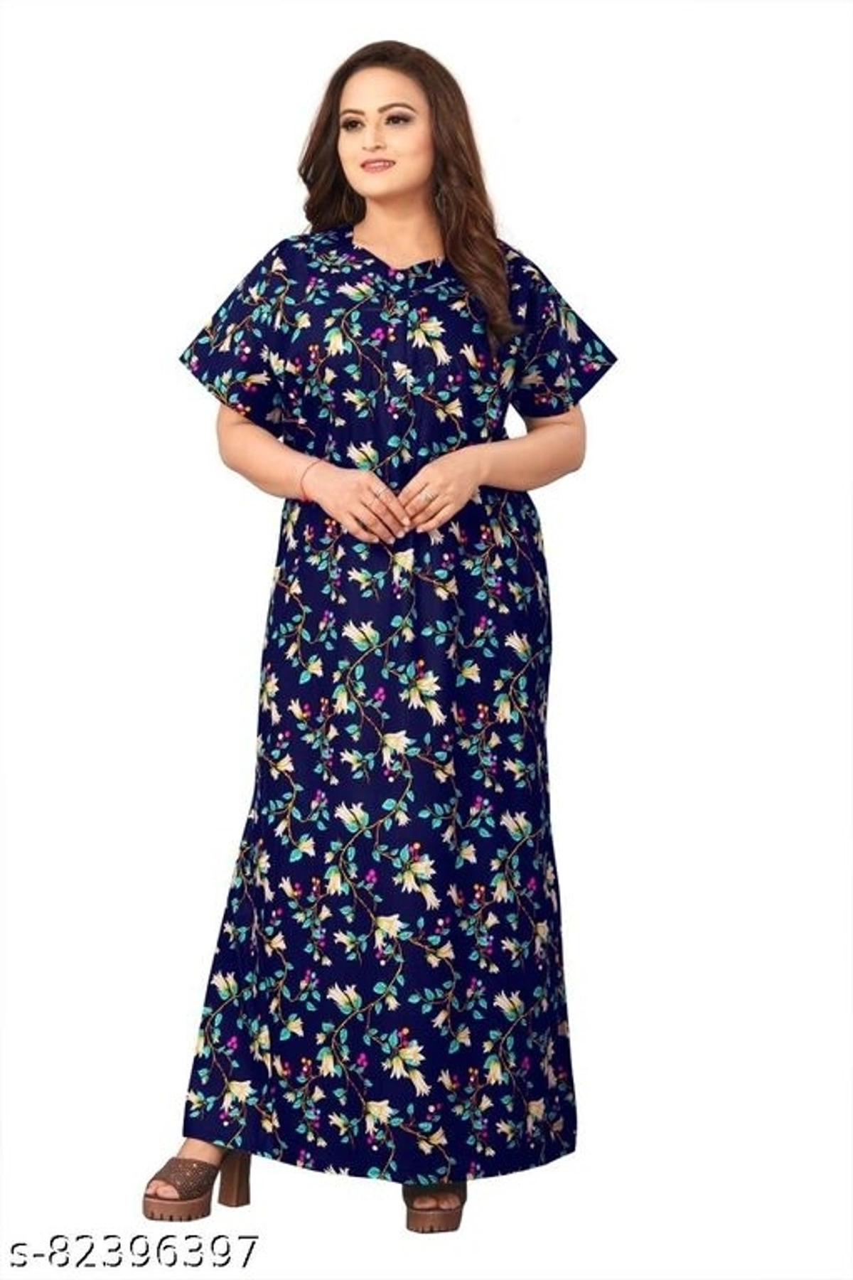 Nightdress Name: Nightdress Fabric: Cotton Sleeve Length: Short Sleeves Pattern: Printed Multipack: 1 Sizes: Free Size (Bust Size: 36 in, Length Size: 44 in) Country of Origin: India
