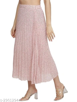 NUEVOSDAMAS Women Georgette pink floral skirt