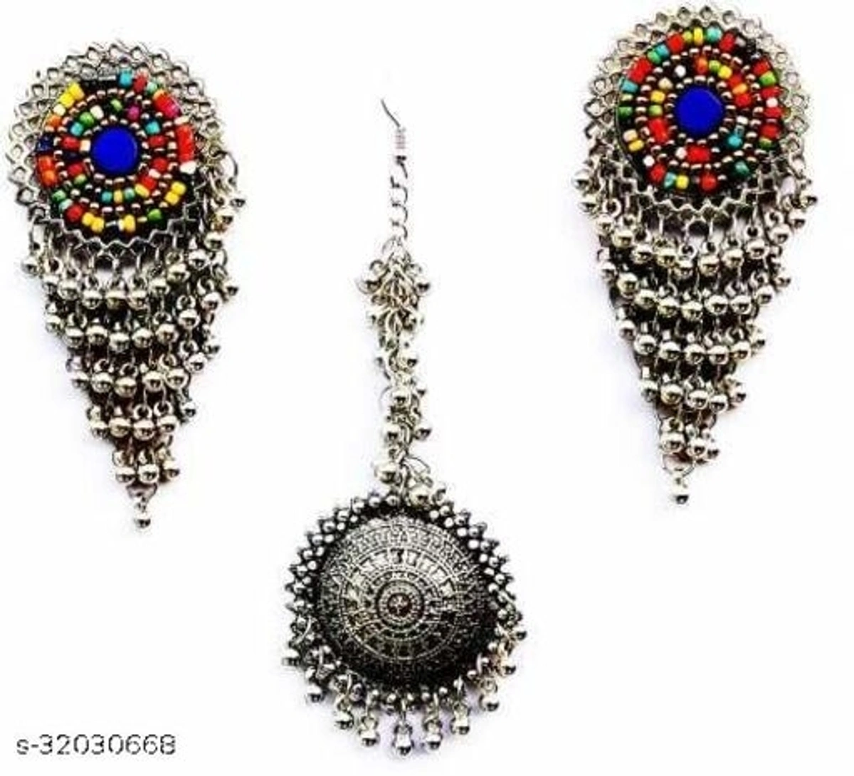 Name: Oxidised Silver Milti Maang Tika Earrings
