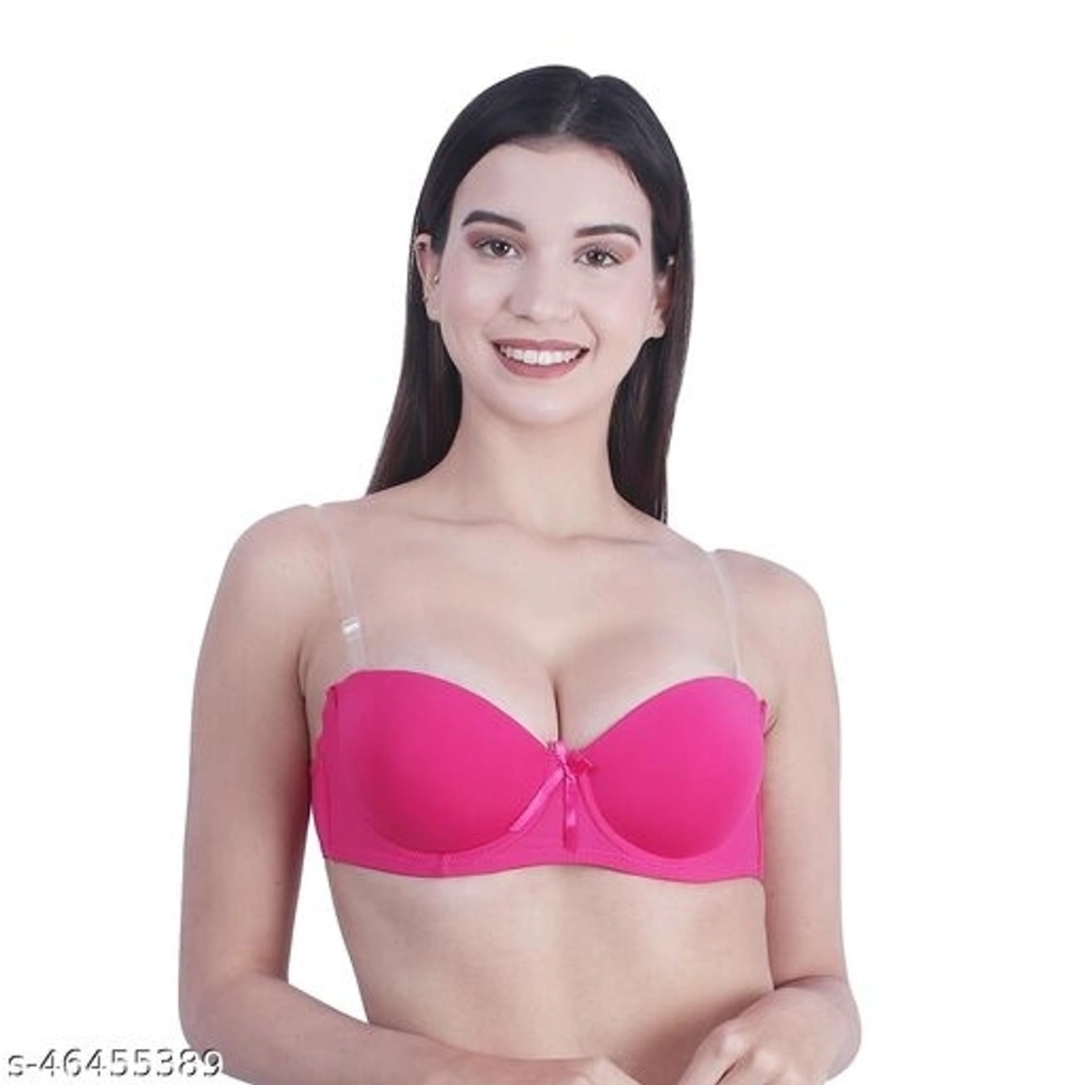 Padded Underwired Push Up Bra Transparent Strapless Back Party Casual Wear Seamless Bra (Pink) (DCUP990A1) Name: Padded Underwired Push Up Bra Transparent Strapless Back Party Casual Wear Seamless Bra (Pink) (DCUP990A1) Fabric: Polyester Print or Pattern Type: Solid Padding: Padded Type: Push-Up Wiring: Underwired Seam Style: Seamless Multipack: 1 Add On: Straps Sizes: 34B (Underbust Size: 29 in, Overbust Size: 34 in) 34C (Underbust Size: 30 in, Overbust Size: 35 in) 32B (Underbust Size: 27 in, Overbust Size: 32 in) 32C (Underbust Size: 28 in, Overbust Size: 33 in) 30B (Underbust Size: 25 in, Overbust Size: 30 in) 30C (Underbust Size: 26 in, Overbust Size: 31 in) 36B (Underbust Size: 31 in, Overbust Size: 36 in) Padded Backless Multi Strapless Push-up Seamless Underwired bandeau Bra Country of Origin: India