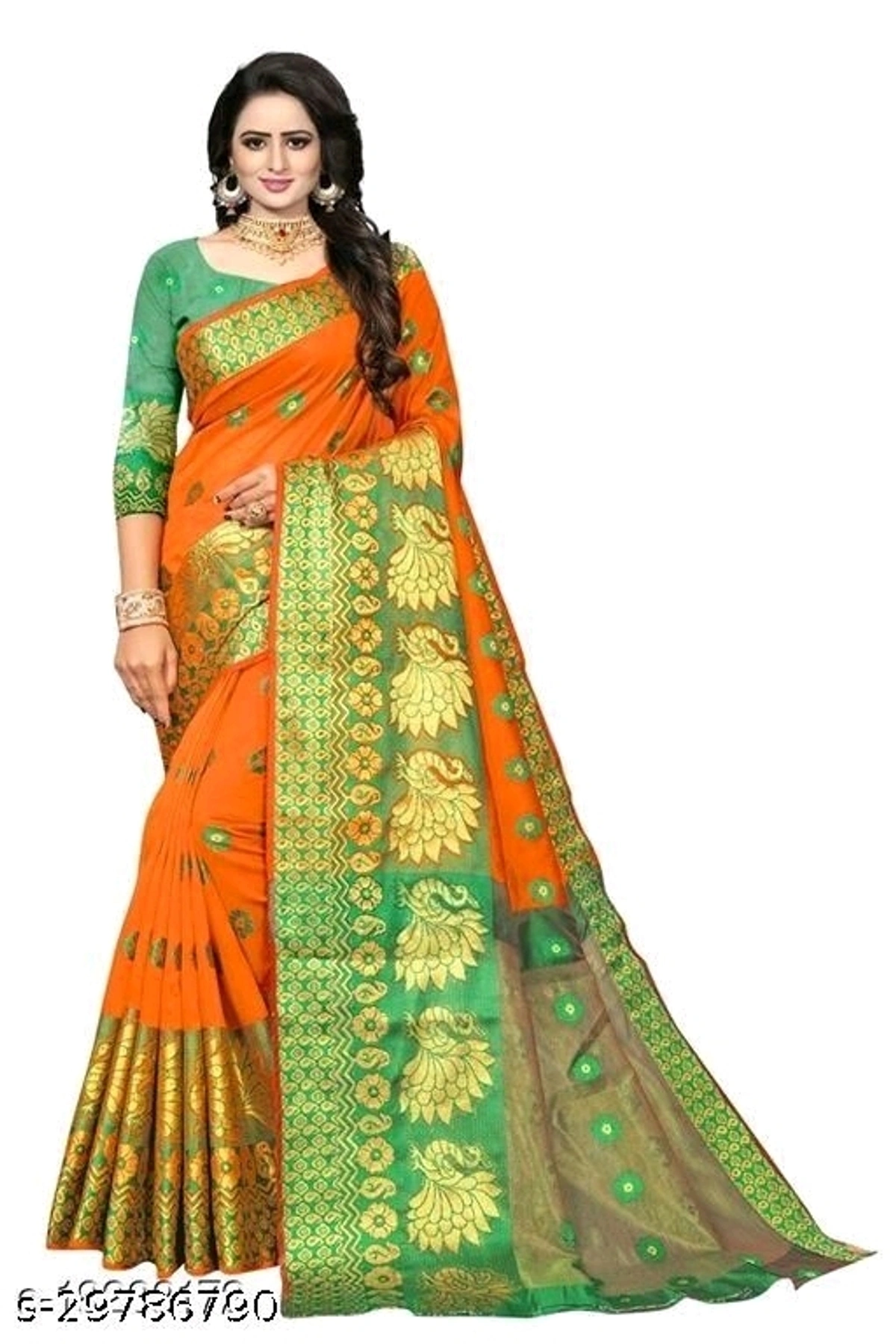 Peacock Kanjivaram Buti Orange Saree Saree Fabric: Cotton Silk Blouse: Separate Blouse Piece Blouse Fabric: Cotton Silk Pattern: Woven Design Blouse Pattern: Jacquard Multipack: Single Sizes: Free Size (Saree Length Size: 5.5 m, Blouse Length Size: 0.8 m) Country of Origin: India