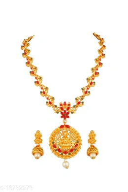 Piah Fashion Ethnic Traditional Gold Plated Long Haram Mala Necklace Temple Jewellery Set with Earrings for Women