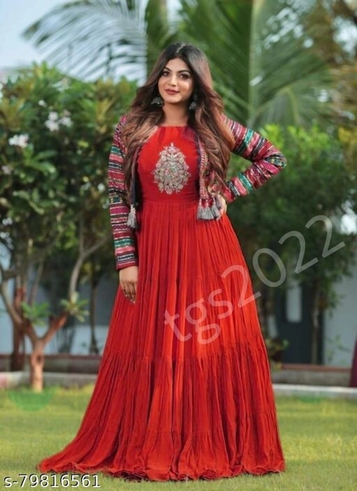 printed jacket gown Name: printed jacket gown Fabric: Rayon Sleeve Length: Three-Quarter Sleeves Pattern: Chikankari Multipack: 1 Sizes: XL (Bust Size: 12 in, Length Size: 12 in, Waist Size: 12 in, Hip Size: 12 in) L (Bust Size: 11 in, Length Size: 11 in, Waist Size: 11 in, Hip Size: 11 in) XXL (Bust Size: 13 in, Length Size: 13 in, Waist Size: 13 in, Hip Size: 13 in) M (Bust Size: 10 in, Length Size: 10 in, Waist Size: 10 in, Hip Size: 10 in) Free and fast delivery Easy Returns Available In Case Of Any Issue return policy 6 Days